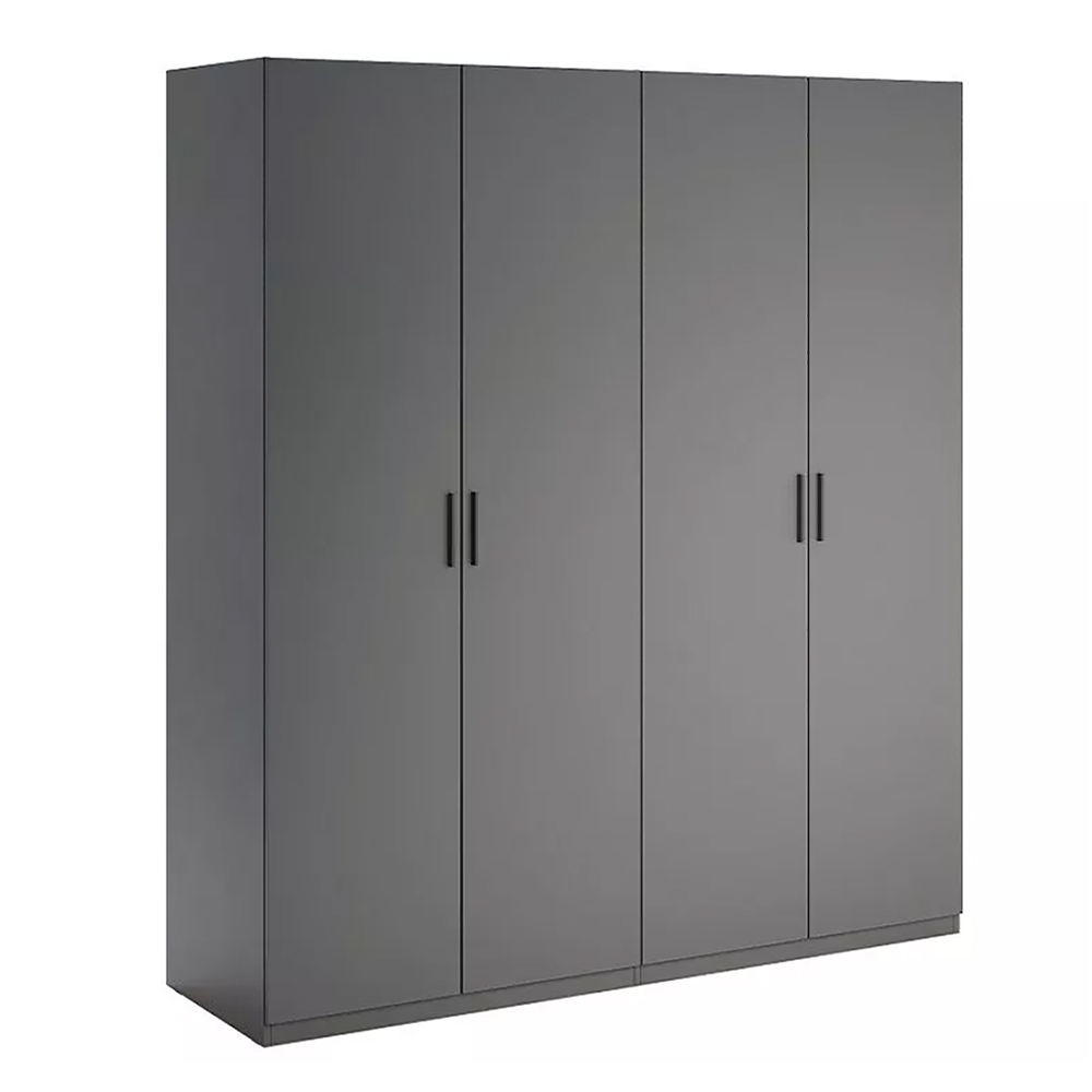 Комплектация кровати включает в себя четыре двери и четыре ящика, что позволяет удобно организовать пространство. Кровать имеет матовое графитовое покрытие, что придает ему стильный вид.