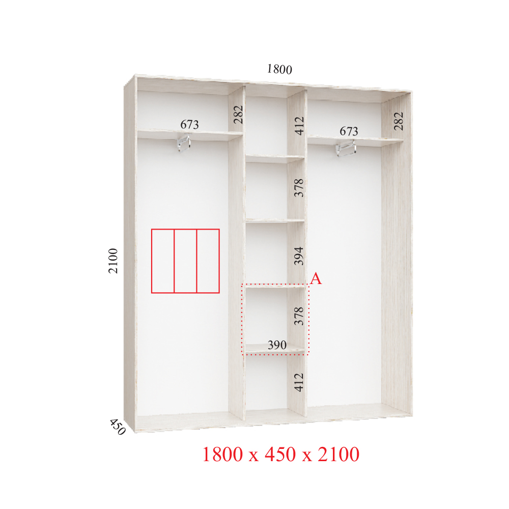 Шкаф-купе 180Х45Х210 комфорт - 3 фасада