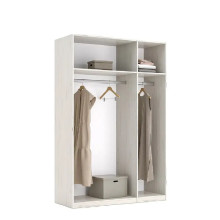 Задняя стенка шкафа изготовлена из ХДФ толщиной 2,5 мм, защищая содержимое от пыли и дополнительно усиливая стабильность конструкции. Задняя стена имеет белый цвет, что создает светлый и актуальный вид.