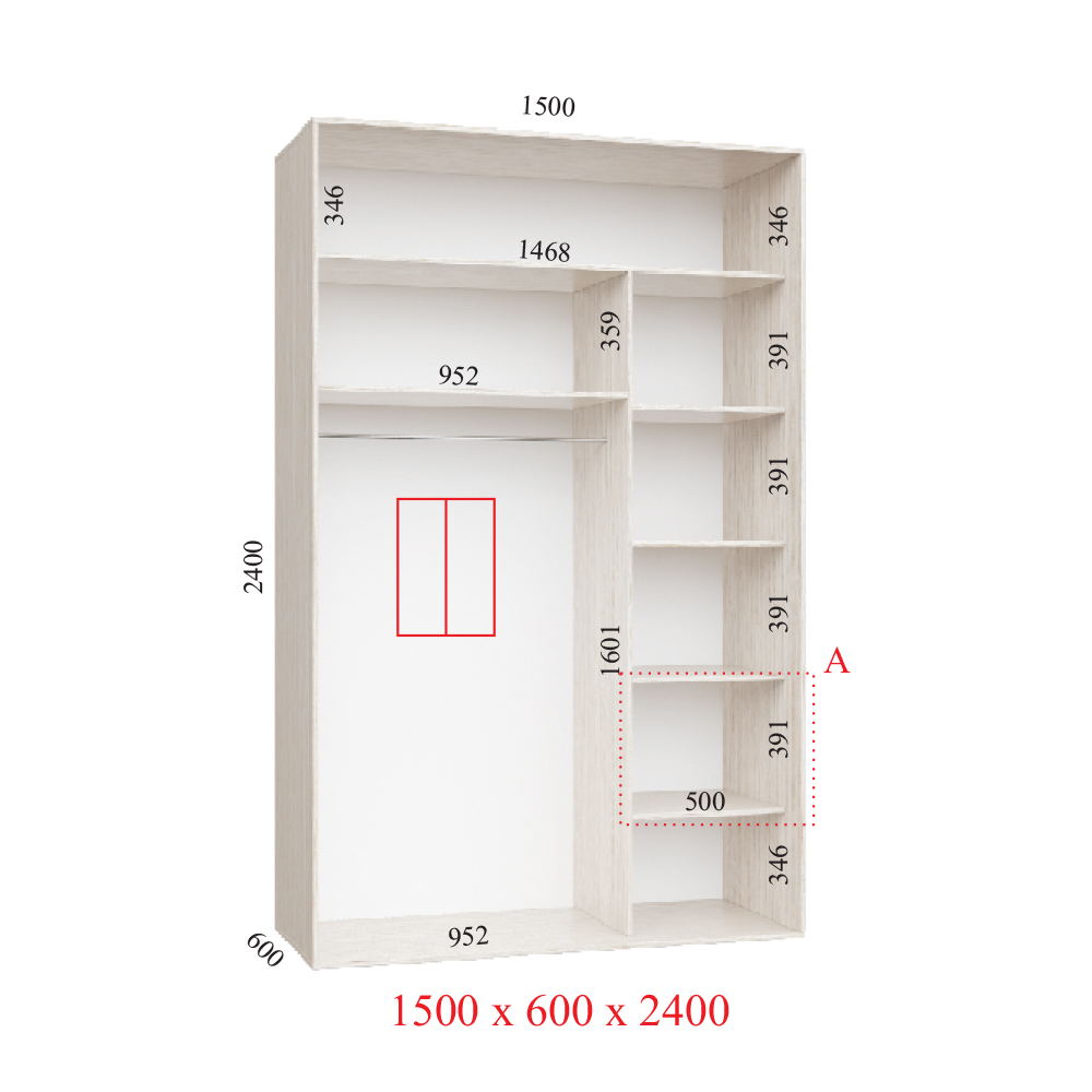 Шкаф-купе 150Х60Х240 Ультра - 2 фасад
