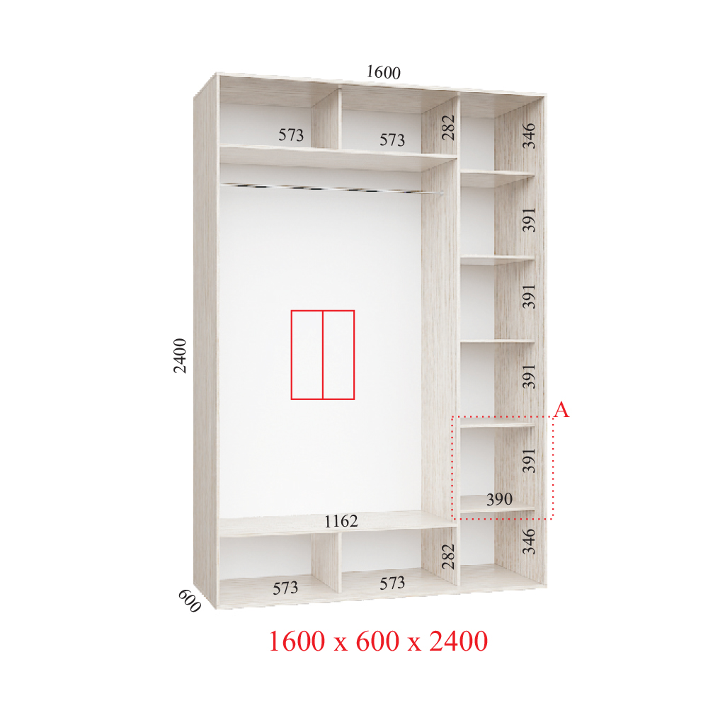 Выводя на новый уровень функциональность и стиль, Шкаф-купе 160Х60Х240 Стандарт является прекрасным выбором для всех, кто стремится к совершенству в хранении. Он предоставляет вам уникальные возможности для преобразования вашего пространства, объединяя в себе контролируемый беспорядок с эстетическим очарованием, создавая прекрасный и уютный уголок в вашем доме. Вы захотите купить его прямо сейчас и начать наслаждаться своим просторным и организованным интерьером.
