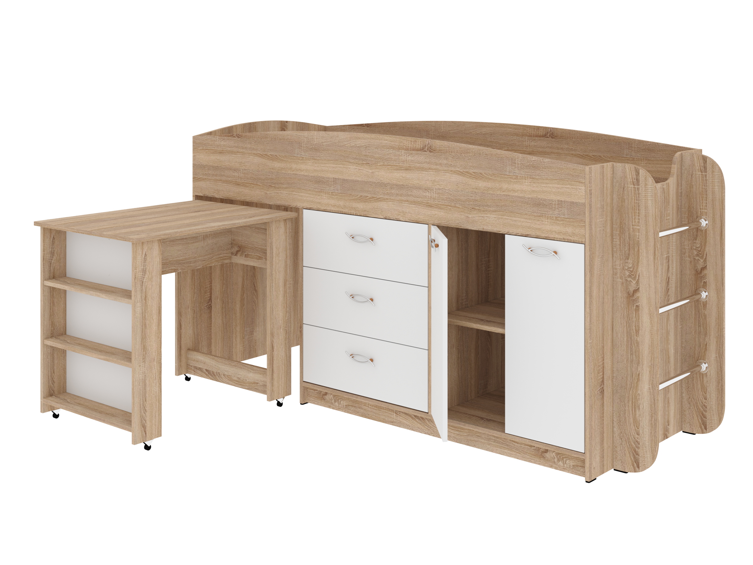 Кровать изготовлена из высококачественного ДСП толщиной 16 мм, что обеспечивает устойчивость и долговечность конструкции. Кромка из ПВХ толщиной 0,45 мм добавляет дополнительную защиту от повреждений и износа.