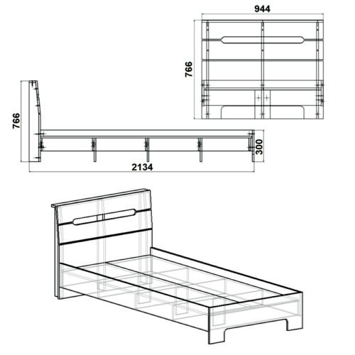 Размеры кровати составляют 944 мм в ширину, 766 мм в высоту и 2133 мм в глубину. Эти размеры делают кровать удобной и функциональной для использования в детской комнате.