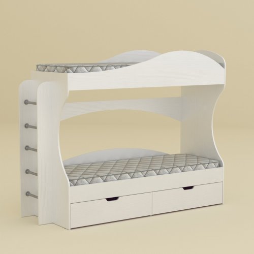 Кровать изготовлена из высококачественного ламинированного ДСП (деревопоисковая плита с ламинированным покрытием). Этот материал обладает высокой прочностью и устойчивостью к царапинам, что особенно важно для мебели, предназначенной для детей.