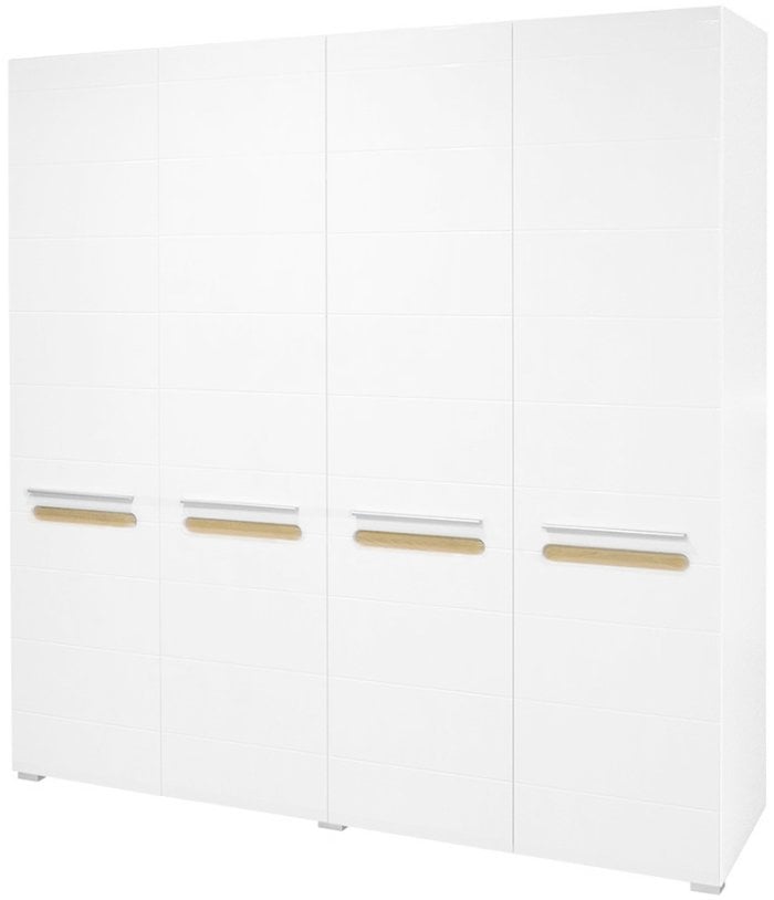 The Bianco 4D wardrobe with dimensions 2000*2100*570 mm is the embodiment of stylish design and functionality in one piece of furniture. Thanks to its large dimensions and four sliding doors, the cabinet is the ideal choice for those who value organization of space and an elegant look in the interior.