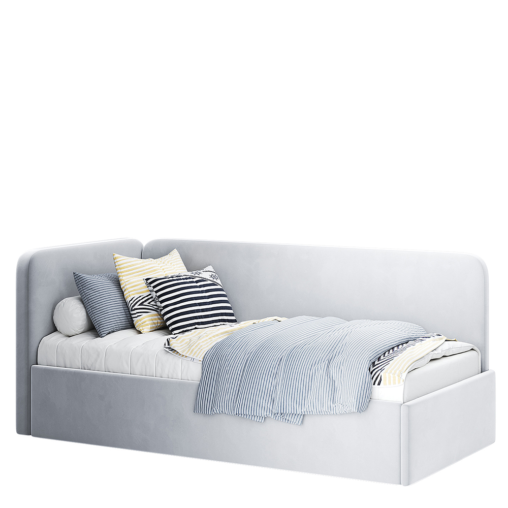 The Happy bed with a padded headboard and MiroMark frame - size 90X200, is an ideal choice for a nursery or bedroom. This model has a left modification, which means that it is suitable for the location to the left of the central area of the room. The dimensions of the bed are 10.60 mm in width and 2.145 mm in length.