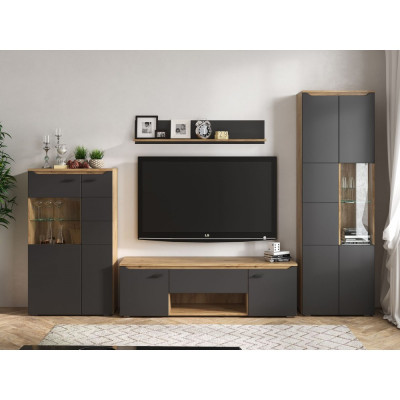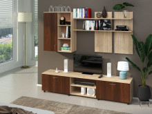 Гостиная Асти 1Дв Сервант 1Дв Полка книжная Комод 2Дв3Шх 1,6 м Стол журнальный Тумба ТВ MiroMark