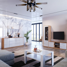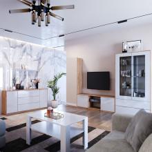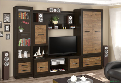 Гостиная Асти 2Дв Сервант 2Дв Полка книжная Комод 2Дв3Шх 2,0 м Стол журнальный Тумба ТВ MiroMark
