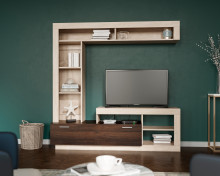 Гостиная Месяц Сервант правый 1Дв Сервант левый 1Дв Полка настенная Комод 2Дв3Шх Тумба ТВ MiroMark