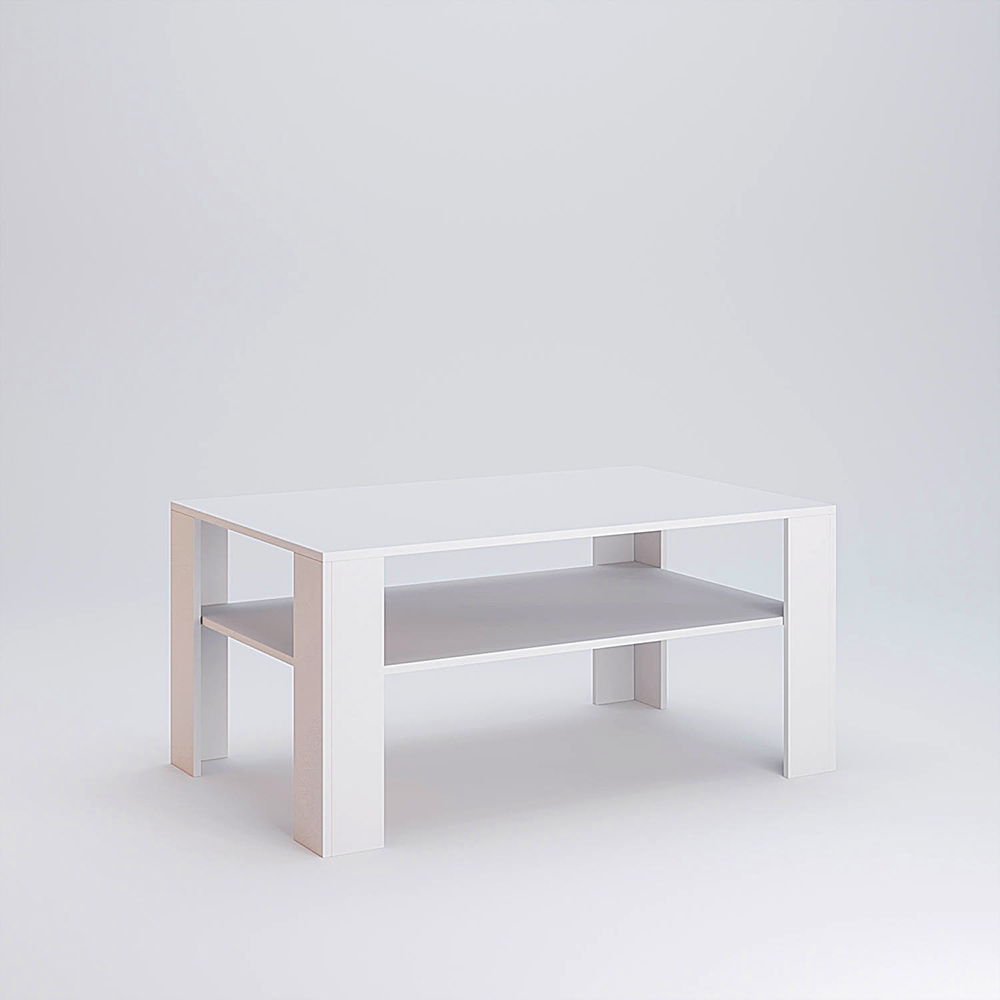 В комплект входят сервант с одной дверцей, полка книжная, журнальный стол и тумба под ТВ. Все эти элементы изготовлены из ламинированной ДСП, обладающей высокой прочностью и качественным покрытием.