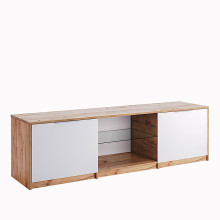 Корпус комода изготовлен из ЛДСП материала, что обеспечивает его прочность и долговечность. Фасад также выполнен из ЛДСП материала, но высокоглянцевое покрытие придает ему элегантный вид. Дверца имеет дополнительно освещение.