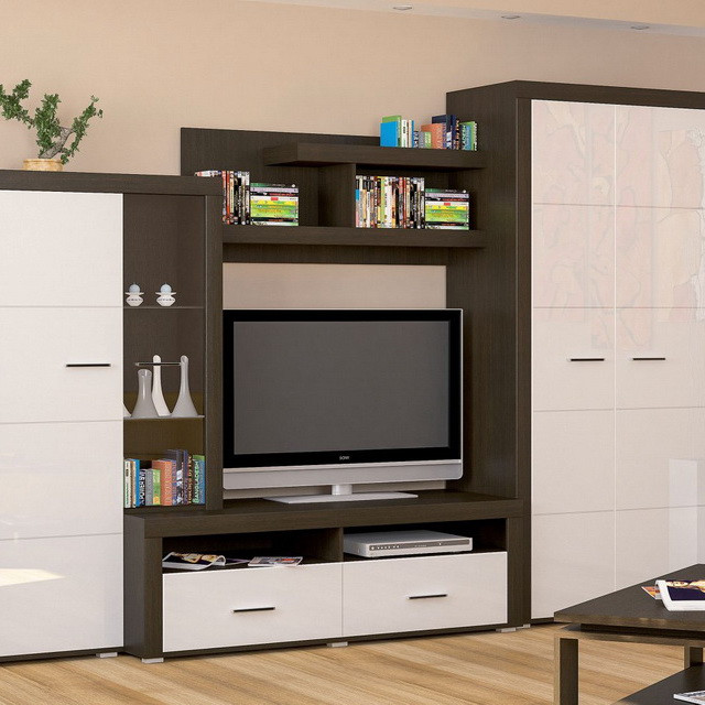 Вы сможете организовать все необходимые предметы и аксессуары, сохраняя порядок в комнате. Еще одним преимуществом этой гостиной является ее стильный современный дизайн. Она выполнена в минималистическом стиле с элегантными глянцевыми фасадами, что добавляет комнате изысканности и роскоши. Вы сможете создать неповторимую атмосферу в вашем доме, которая непременно поразит гостей.