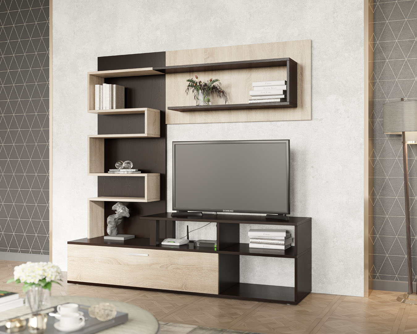 Корпус изготовлен из качественного ДСП и доступен в двух цветах: Дуб сонома и магия Венге. Эти цвета придают полке элегантности и изяществу, а также легко сочетаются с разными стилями интерьера.