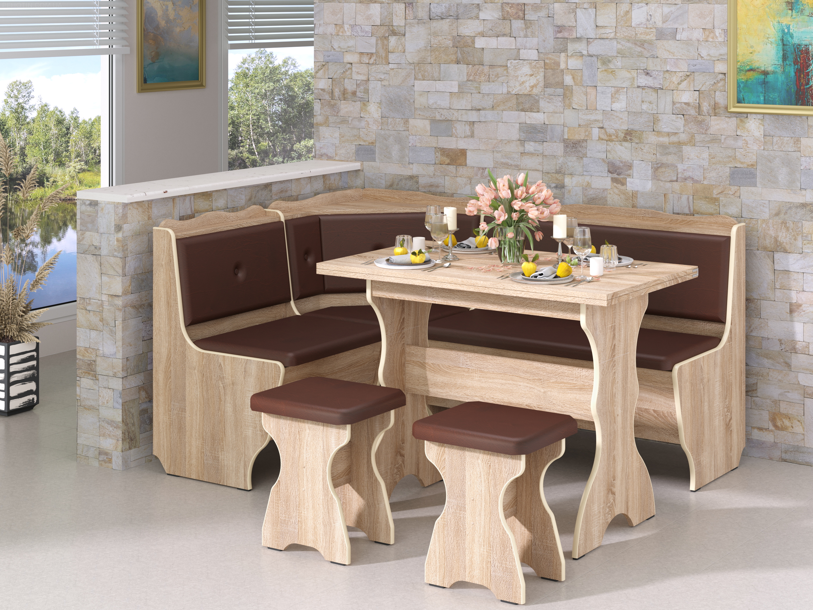 Кухонный уголок "Президент" имеет классический и стильный дизайн, который легко впишется в любой интерьер. Его компактные размеры позволяют экономить пространство на вашей кухне, что особенно важно для небольших помещений. Детали интерьера из натурального дерева, такие как дуб сонома, придают уголку естественный вид и создают теплую и уютную атмосферу.