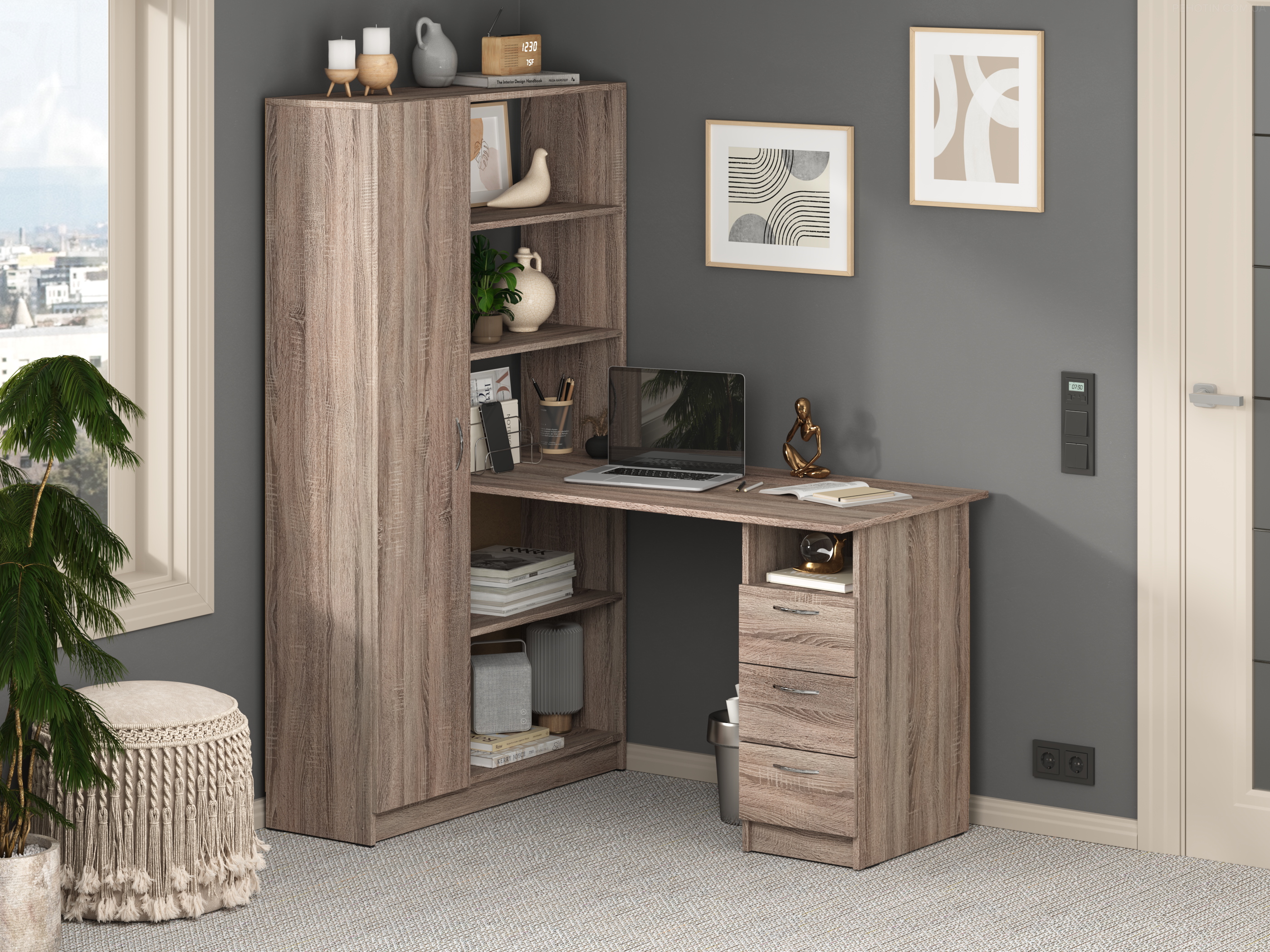 Письменный стол "Спектр" воплощает ваши мечты с эффективным использованием места в комнате. Полки с оружием легко вместят книги, документы и даже одежду. Здесь есть также полки для различных предметов и сувениров. Три выдвижных ящика позволяют хранить мелочи и вещи первой необходимости.