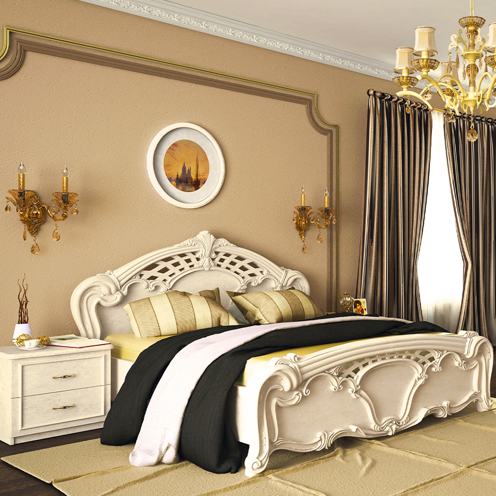 Головною частиною набору є ліжко розміру 160x200. Його можна зробити з деревним або залізним каркасом з ламелями. Ламелі з букового дерева гнутоклеєні, шириною 53 мм і товщиною 8 мм, що забезпечує високий рівень підтримки і комфорту під час сну.