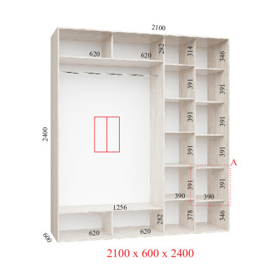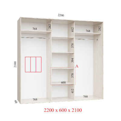 Шафа-купе 220Х60Х210 Стандарт - 3 фасади