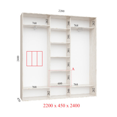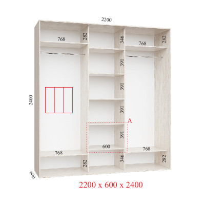 Шафа-купе 220Х60Х240 Стандарт - 3 фасади