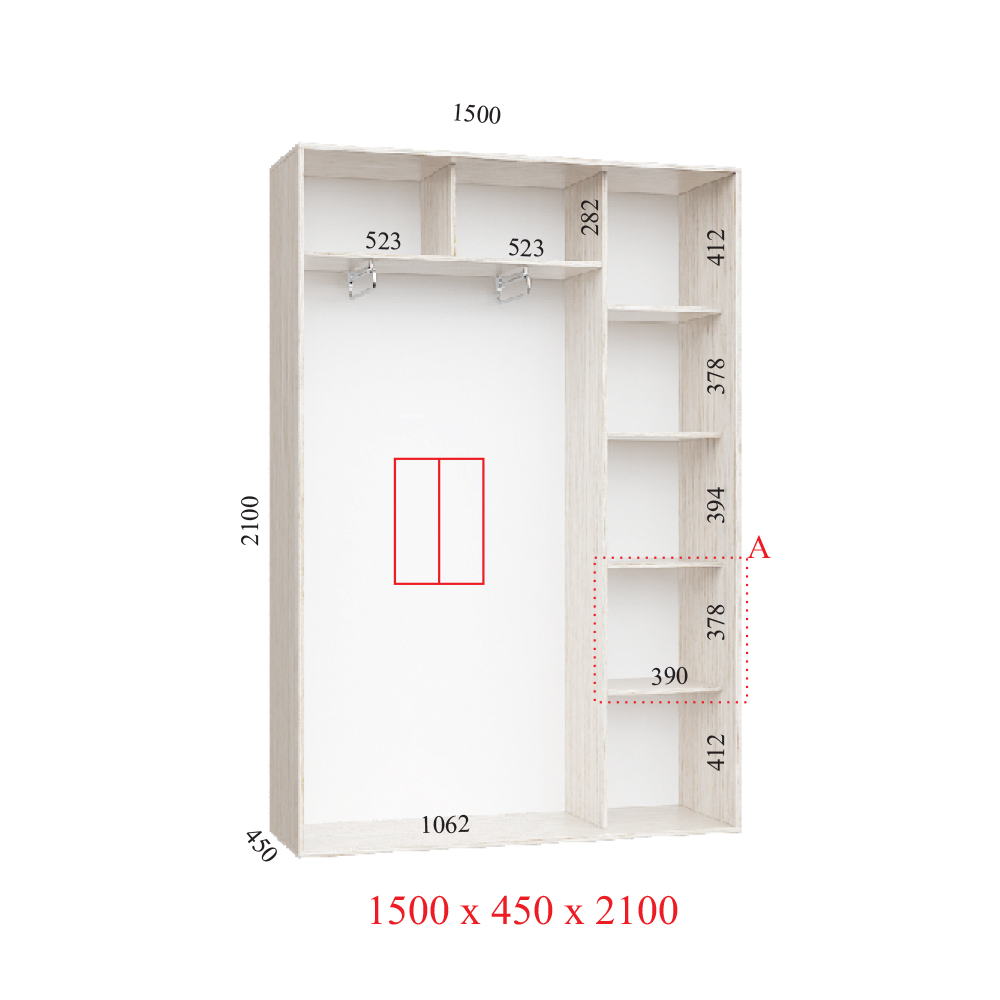 Шафа-купе 150х45х210 Стандарт – 2 фасаду-ідеальне рішення для оптимальної організації простору вашої кімнати. Цей дивовижний шафа-купе не тільки привносить стиль і елегантність в ваш інтер'єр, але і пропонує ряд унікальних переваг, які зроблять Ваше життя набагато простіше і зручніше. Внутрішні розміри 150х45х210 см забезпечують просторе і функціональне місце для зберігання речей різних розмірів і типів.