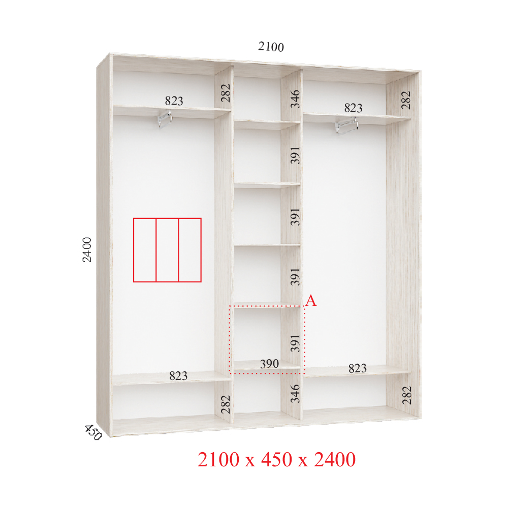Кожен предмет буде на своєму місці, що допоможе вам зберегти порядок і легко знайти потрібні речі. Якість виготовлення шафи-купе 210х45х240 комфорт - 3 фасаду - на найвищому рівні. Він виготовлений з міцних і довговічних матеріалів, що гарантує його тривалий термін служби. Ви можете бути впевнені, що ваш шафа-купе прослужить вам довгі роки, не втрачаючи свого зовнішнього вигляду. Купуючи шафа-купе 210х45х240 комфорт - 3 фасаду, ви отримуєте відмінне співвідношення ціни і якості.