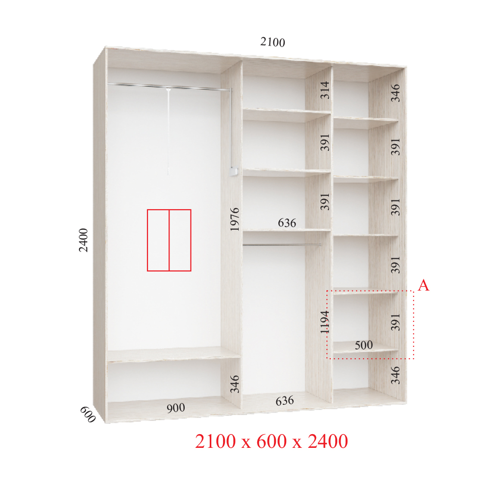 Завдяки неповторній конструкції і оптимальної компонуванні полиць, ви зможете легко і зручно розмістити всі ваші речі, зберігаючи порядок і чистоту. Великі відділення дозволять зберігати не тільки одяг, а й інші предмети, такі як взуття, постільна білизна та аксесуари. Унікальний дизайн шафи-купе також заслуговує на окрему увагу. Його сучасний зовнішній вигляд і елегантні лінії створюють атмосферу комфорту і стилю у вашій кімнаті.