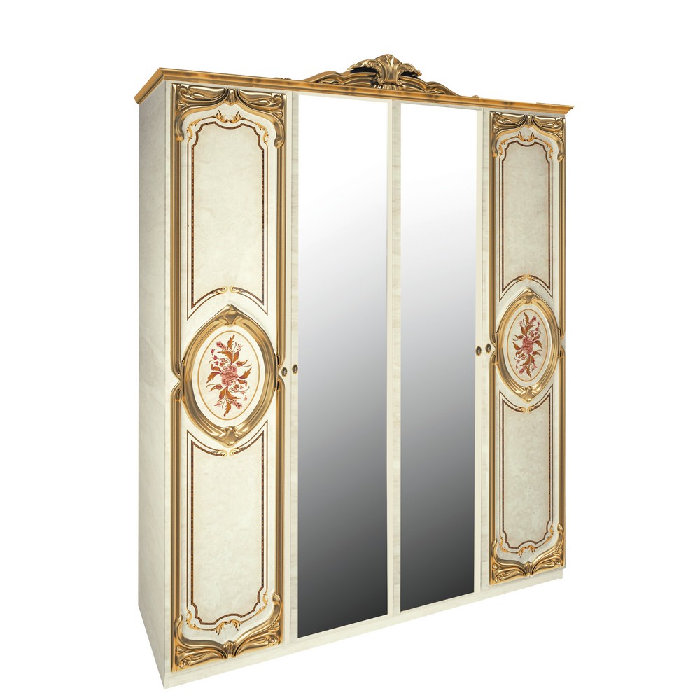 Шафа Реджина Голд 4дв MiroMark-це стильний і практичний елемент інтер'єру для вашої спальні або гардеробної кімнати. Вона виготовлена в Україні з використанням високоякісних матеріалів.