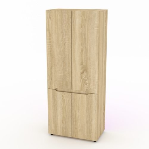 Шафа-23 висотою 1950 мм, шириною 800 мм і глибиною 464 мм являє собою стильний і функціональний елемент інтер'єру, виготовлений з ламінованого ДСП (декоративна фанера). Ця шафа поєднує в собі сучасний дизайн, високу якість і практичність.