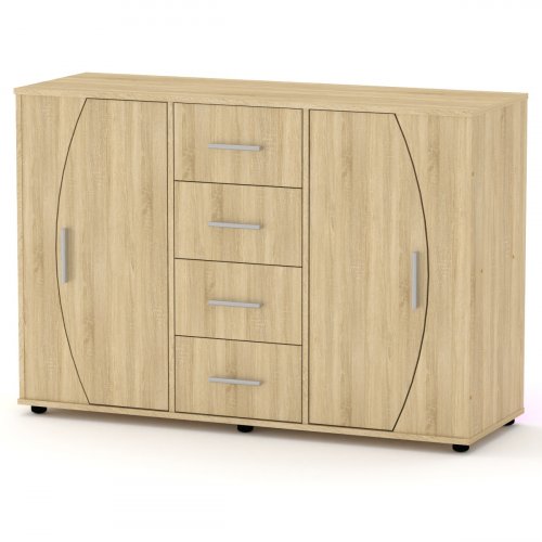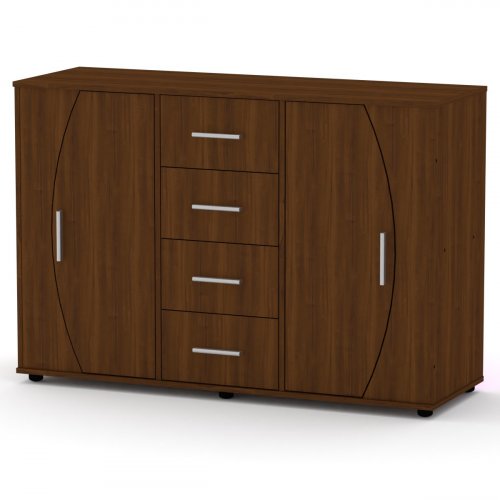 Цей комод доступний у різних комбінаціях кольорів ДСП, включаючи бук, вільху, горіх, яблуню, дуб соному та венге. Ви можете вибрати комбінацію кольорів, яка найкраще відповідає вашому інтер'єру та вашим особистим уподобанням.
