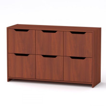Матеріал: цей комод виготовлений з високоякісного ламінованого ДСП, яке гарантує міцність і довговічність меблів. Воно також легко доглядається, що робить його ідеальним вибором для сімей, де є діти або домашні тварини.