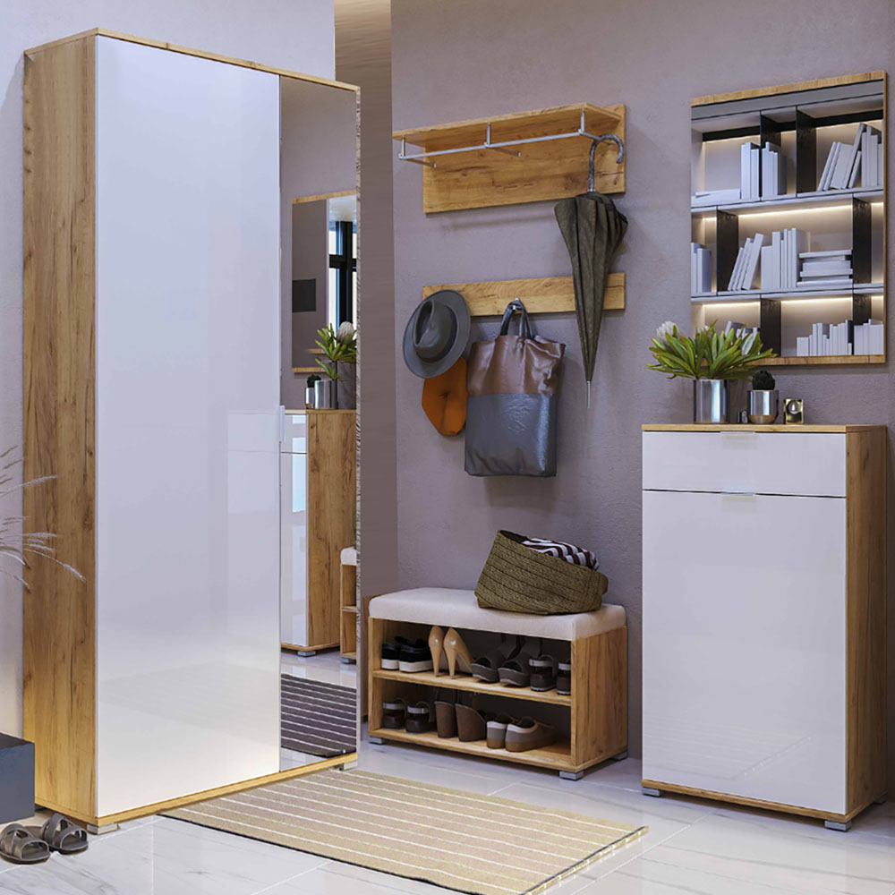 Комод доступний в кольорі Дуб Крафт-Глянець білий, що надає йому стильність і вишуканість. Він виготовлений на виробництві в Україні, що гарантує його високу якість і відповідність вимогам експлуатації.