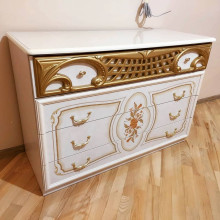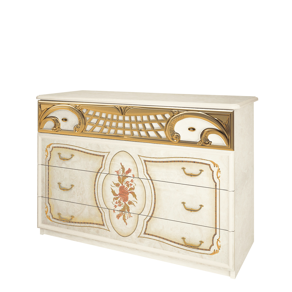 Комод Реджина Голд 4шх MiroMark-це елегантний і стильний предмет меблів, який додасть шарму і функціональності в будь-яке приміщення. Завдяки надійній конструкції і високоякісним матеріалам, використовуваним у виготовленні, цей комод відмінно підходить для щоденного використання і має тривалий термін служби.