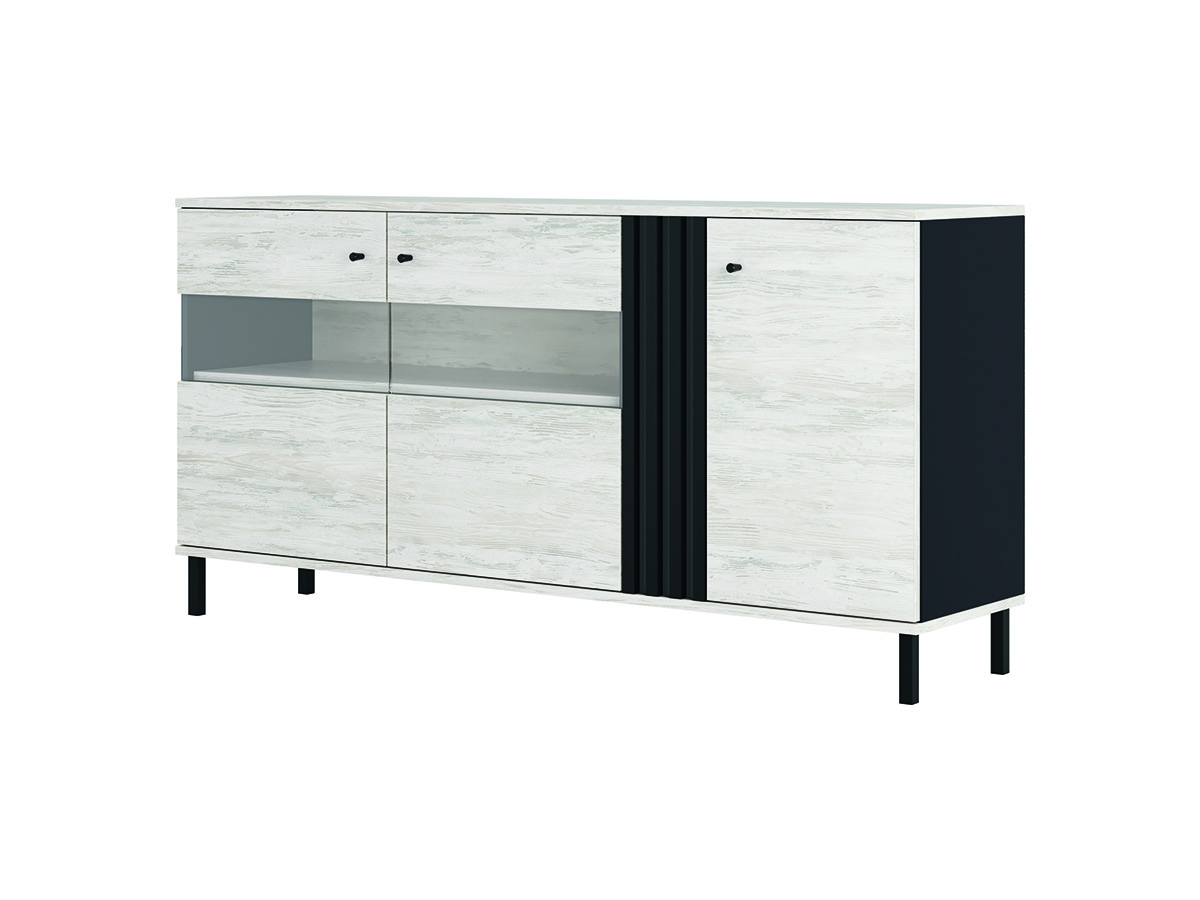 Комод Тео 3Д Ск має три дверцята, що відкривають доступ до великого внутрішнього простору для зберігання різних речей. Це дозволяє зберігати предмети, які потребують захисту від пилу або потребують зберігання у закритому просторі. Крім того, комод оснащений ящиками, що забезпечують зручний доступ до найнеобхідніших речей і відмінно доповнюють простір для зберігання.