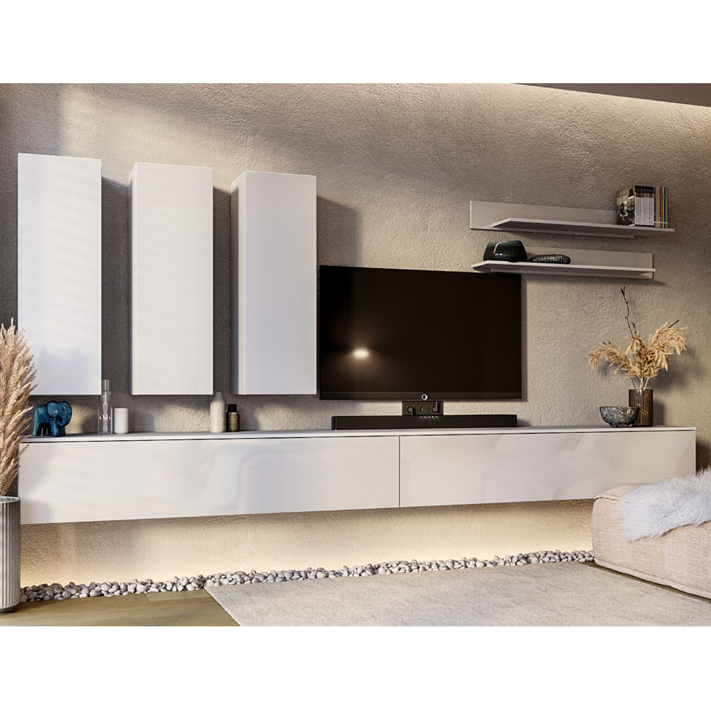 Ціна вказана за комплект, який ви бачите на фото. Ви можете вибрати вітальню з білим глянцевим або чорним глянцевим виконанням в залежності від вашого стилю і переваг.
