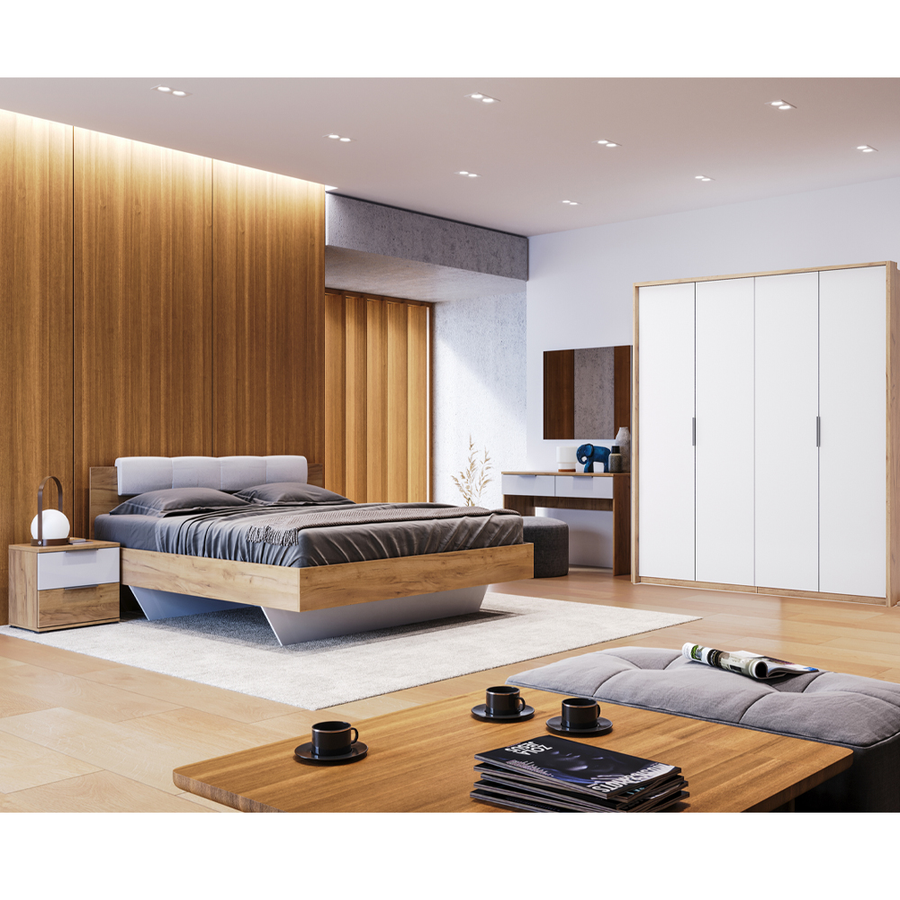 Изготовлен в Украине с использованием высококачественных материалов, этот набор спальни отвечает самым высоким стандартам качества и стиля, делая ваше пространство для отдыха настоящим оазисом уюта и модерности.