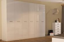 Этот комплект включает в себя все основные элементы спальни: кровать, комод с тремя ящиками, шкаф 6Д без зеркал, две прикроватные тумбочки и зеркало. Все эти элементы согласованы по стилю и цвету, белый глянцевый выглядит элегантно и создает визуальный акцент в помещении.