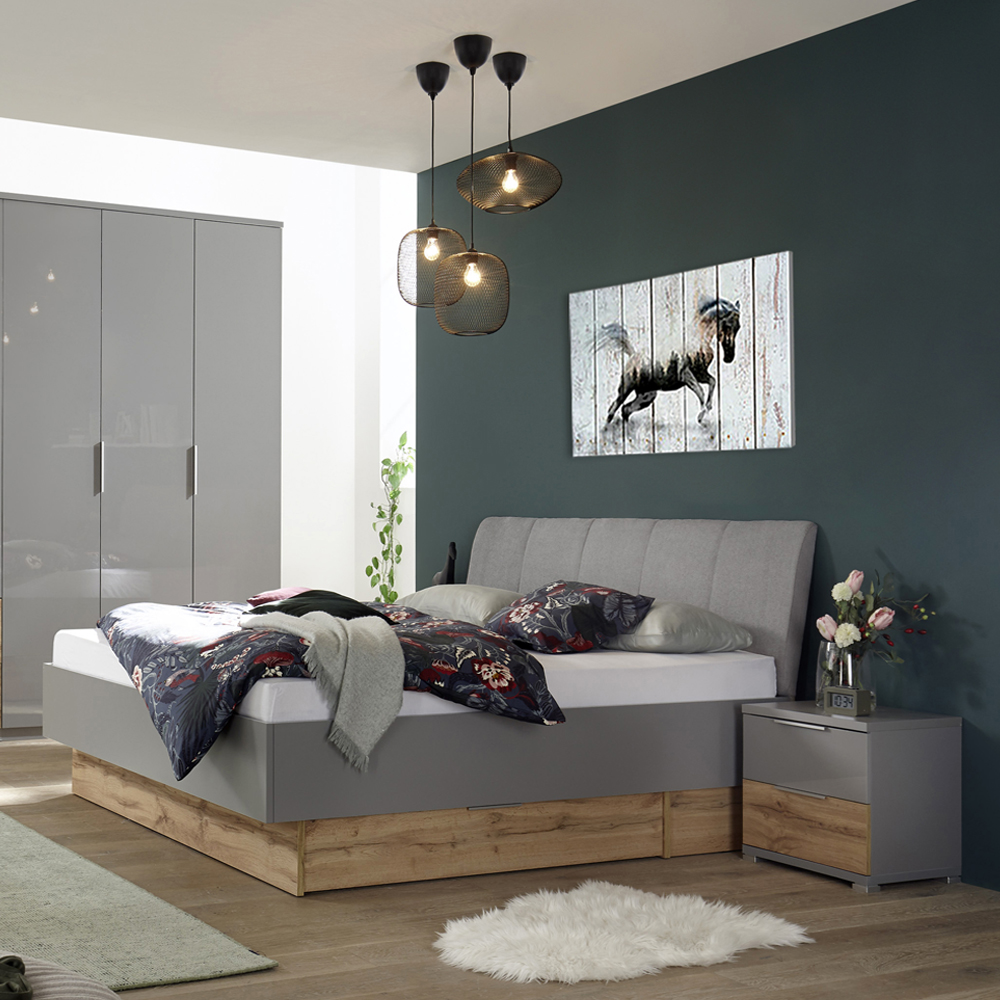 | Особенности | Кровать с мягким изголовьем 160х200 с бельевыми ящиками без каркаса под матрас. Корпуса шкафа, комода и тумбы Ламинированная ДСП 16 мм. Фасады Трехслойное высокоглянцевое покрытие, высушенное под ультрафиолетовыми лучами. ДСП ламинированная 18 мм. |