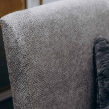 Спальное место кровати изготовлено из мебельной ткани, что придает уют и комфорт. Кровать стилюзирована в современном дизайне, выполнена в сером шиферном цвете с дубовым оттенком, что придает элегантности и привлекательности.