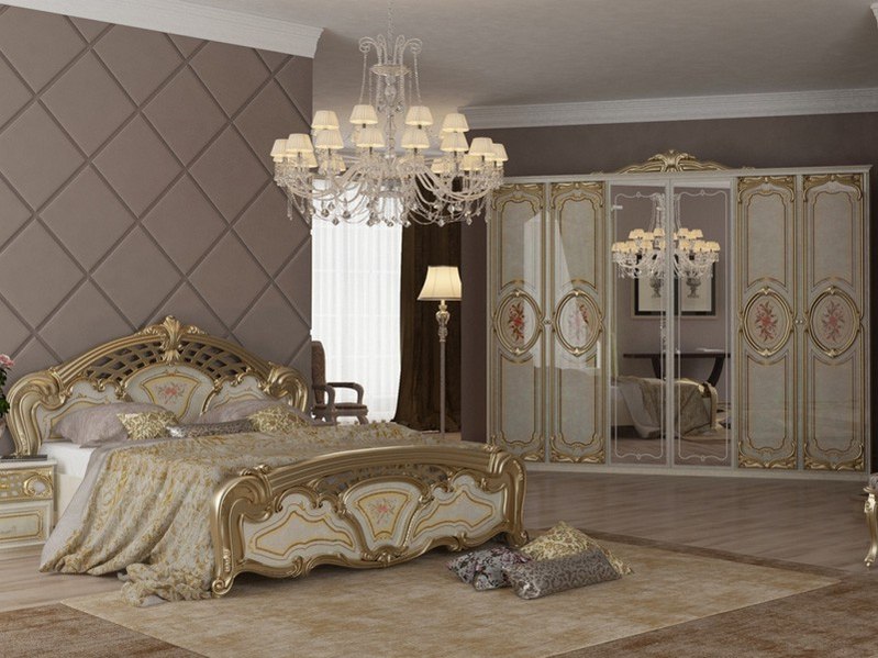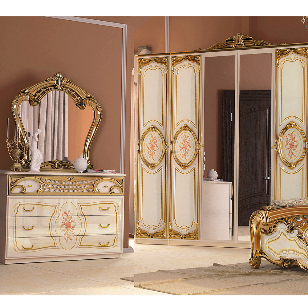 Комплект спальни Реджина Голд 6Дв Шкаф 6Дв Кровать 1,6 Тумба 2Шх 2шт Комод 4Шх Зеркало MiroMark