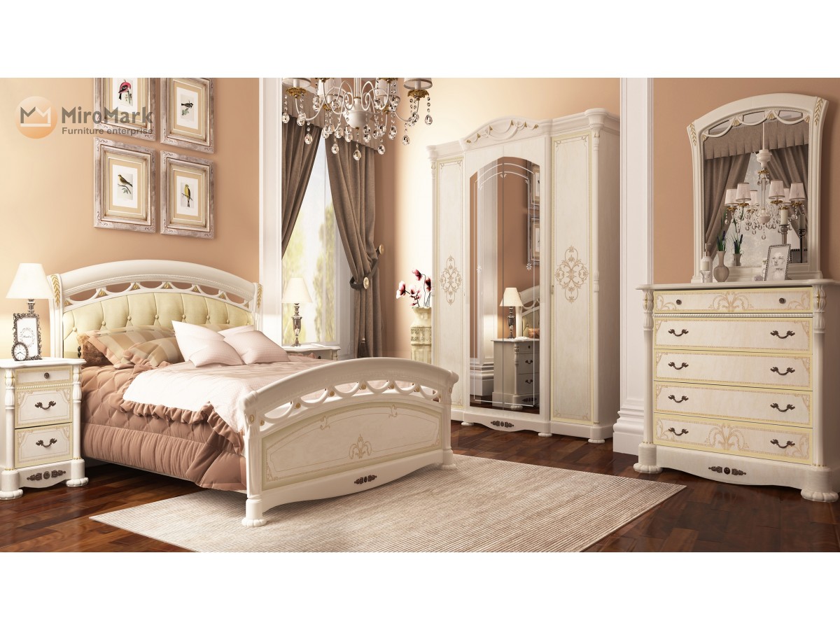 Комплект спальни Роселла 4Дв Шкаф 4Дв Кровать 1,6 Тумба 3Шх 2шт Комод 5Шх Зеркало MiroMark