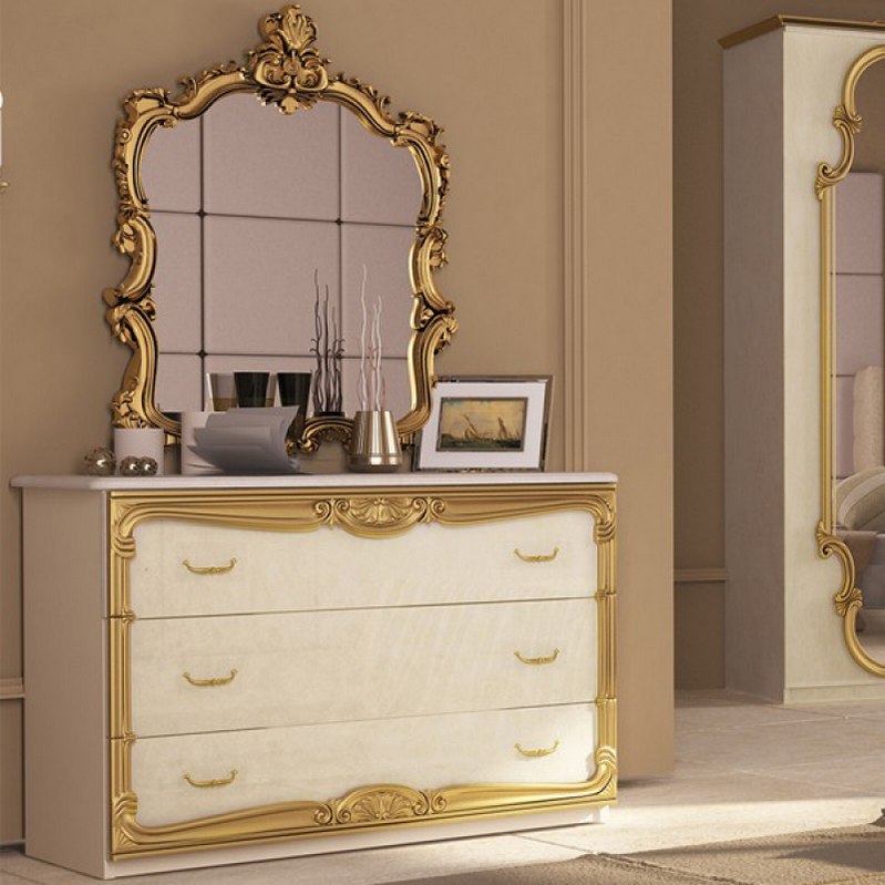 Комплект спальни Виктория 4Дв Шкаф 4Дв Кровать 1,6 БК Тумба 2Шх 2 шт Комод 3Шх Зеркало 1180х820 MiroMark