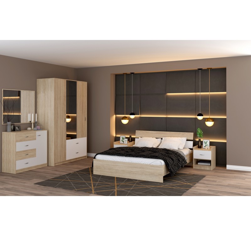 В комплект входят: просторный шкаф с различными отделениями для одежды, удобная кровать с мягким изголовьем, изящная туалетная тумба и стильный комод. Это позволит вам организовать все вещи и аксессуары так, чтобы они всегда были под рукой, сохраняя при этом чистоту и порядок. Прочность и долговечность - еще одни факторы, благодаря которым Спальня Неаполь выделяется на фоне других аналогичных предложений на рынке.