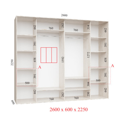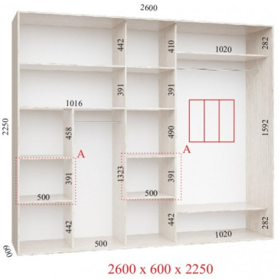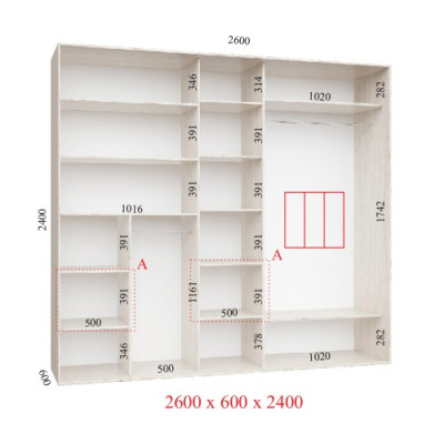 Шкаф-купе 260Х60Х240 Люкс 3 фасада