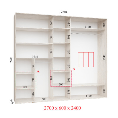 Шкаф-купе 270Х60Х240 Люкс 3 фасада