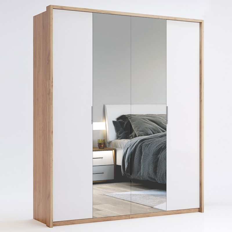 Шкаф Асти 4Дв MiroMark с двумя зеркальными дверями. Компактный и стильный шкаф Высота соответствует стандартным параметрам, что позволяет удобно использовать его для хранения вещей в гостиной или спальне. Ширина и глубина также оптимальны для обеспечения достаточного пространства для хранения. Вы можете выбрать один из четырех вариантов дверей, включающих комбинацию деревянных панелей с зеркалами, создающими эффект визуального пространства. Зеркало на дверце добавляет шарма и практичности в шкаф.