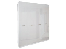 Шкаф имеет четыре двери с плавным закрытием благодаря использованию завес повышенной прочности. Ручки изготовлены из хромированной фурнитуры, что придает изысканности и стильности шкафу.