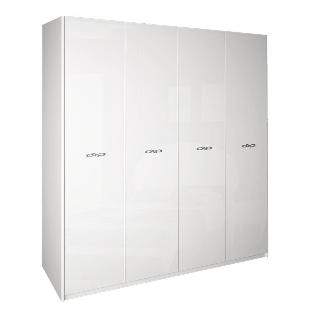 Шкаф имеет четыре двери, обеспечивающие удобный доступ к содержимому шкафа. Вариант дверей – 4Д ДСП, что создает стильный вид и придает элегантности шкафу. Сбор деталей шкафа производится с помощью эксцентриковой стяжки (minifix), что обеспечивает надежное соединение и простоту в монтаже.