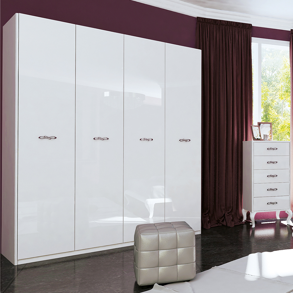 Шкаф Империя 4дв без зеркала MiroMark - имеет стильный и современный дизайн, практически вписывающийся в любой интерьер. Она изготовлена из высококачественных материалов, таких как ЛДСП, обеспечивающих прочность и долговечность мебели. Корпус выполнен из ДСП ламинированной 16мм, а фасад имеет трехслойное высокоглянцевое покрытие, устойчивое к ультрафиолетовым лучам.