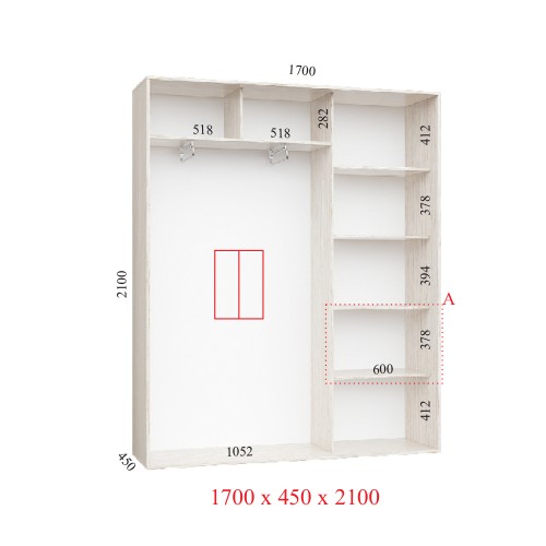 Главное преимущество этого шкафа-купе - его компактные размеры 170Х45Х210, которые позволяют установить его даже в небольших помещениях. Вы сможете максимально оптимизировать использование пространства в комнате, благодаря его удобной конструкции с двумя фасадами. Это означает, что вы можете получить доступ ко всем своим вещам без необходимости перемещаться вокруг шкафа.