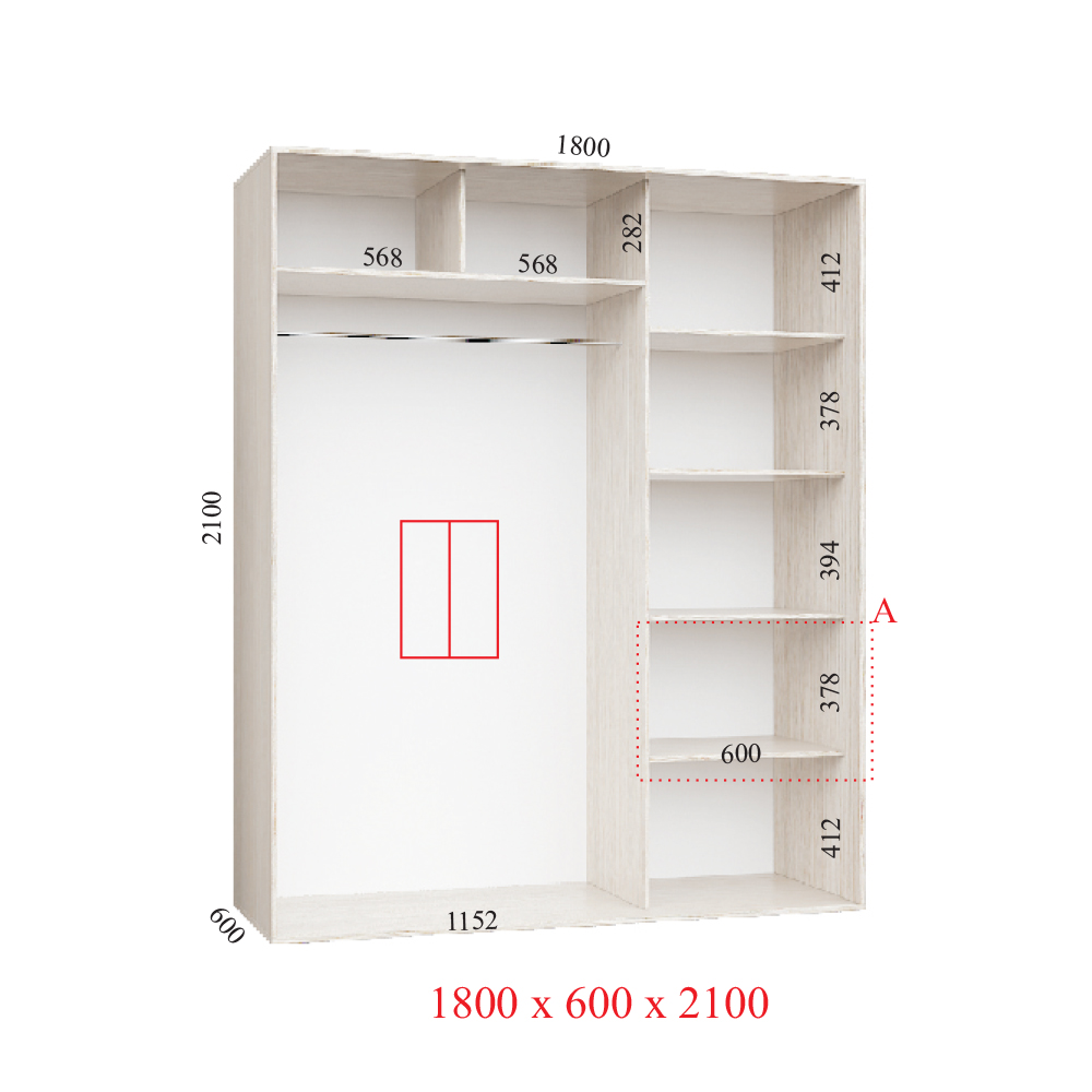 Шкаф-купе 180Х60Х210 Стандарт - 2 фасада