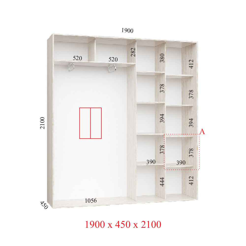 Наш шкаф-купе 190Х45Х210 Стандарт - 2 фасада также оснащен полочками, штангами для вешалок и выдвижными ящиками, что позволяет оптимально использовать пространство внутри шкафа. Вы сможете легко размещать здесь вашу одежду, аксессуары и другие предметы. Благодаря этим функциональным возможностям, вы будете иметь все под рукой, всегда знаете, где находится нужная вещь и сэкономите свое время на поиск.